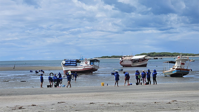 A reunião das lideranças das colônias aconteceu na praia de Pernambuquinho. Na ocasião do encontro, as marisqueiras de Icapui, vestidas de azul, fizeram a cata de marisco.