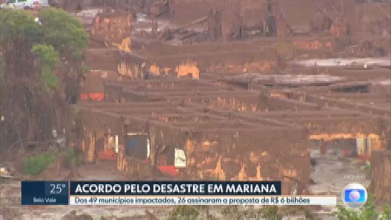 26, dos 49 municípios atingidos pelo desastre da Samarco, em Mariana, assinaram acordo de reparação. Expandir ou colapsar descrição.