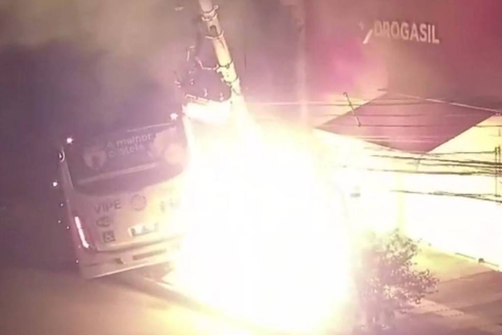 O carro parou do outro lado da rua, e o ônibus, após perder o freio, percorreu cerca de 200 metros e bateu em um poste, que ficou danificado. Houve diversas explosões no local, e a região ficou sem energia.
