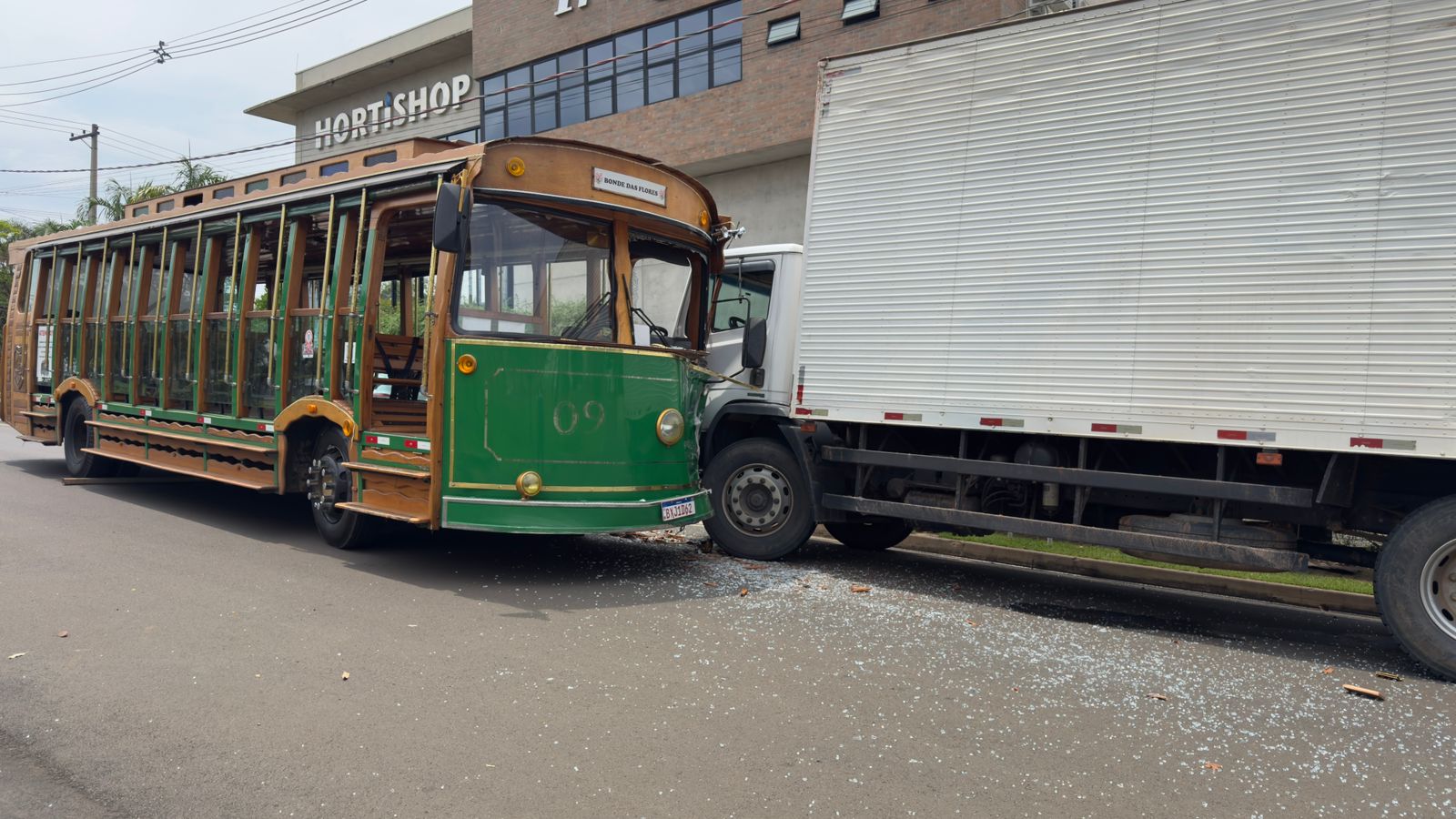 O bonde só parou quando colidiu com um caminhão estacionado na via, abaixo da Avenida.
