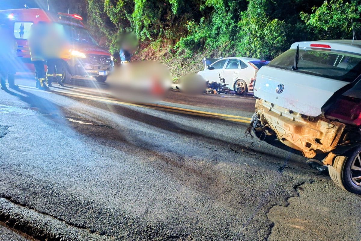 Um grave acidente entre três veículos matou um adolescente e um jovem em Xanxerê, no Oeste de Santa Catarina. As vítimas, de 16 e 20 anos, estavam em uma motocicleta que se envolveu em uma parte com um VW Gol e um Ford Focus.