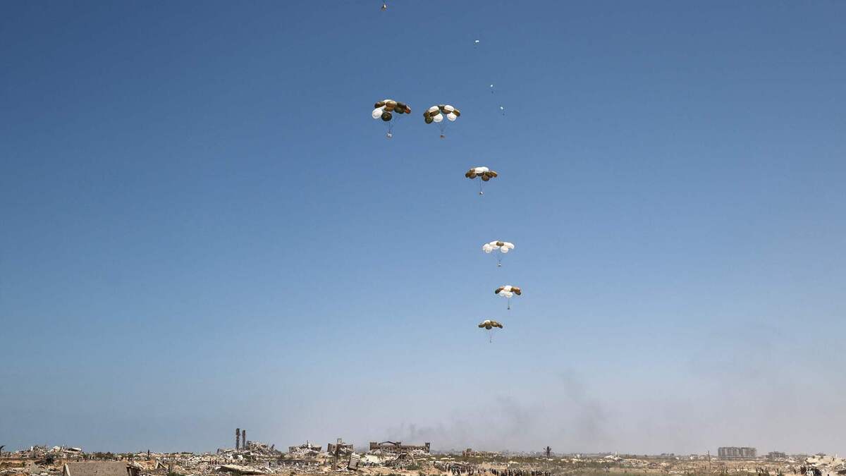 Várias agências da Organização das Nações Unidas (ONU) têm denunciado que os lançamentos aéreos com ajuda humanitária são insuficientes e que Israel deve permitir a entrada de muito mais bens essenciais por via terrestre, para travar a fome entre os seus 2,2 milhões de habitantes, a maioria dos quais deslocados no território engolido pelos escombros.