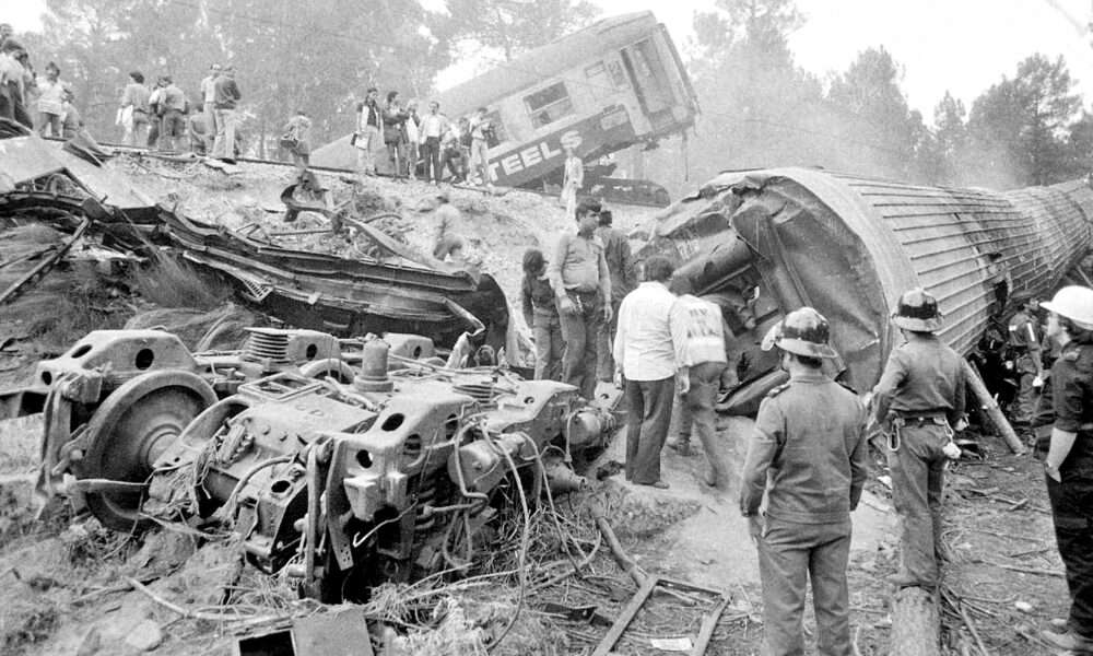 O desastre ocorreu a 11 de setembro de 1985, quando o Sud-Express, lotado com mais de 400 emigrantes que regressavam a França após as férias, colidiu frontalmente com um comboio Regional. O número exato de mortos permanece uma incógnita, com estimativas a variar entre 40 e 200. Muitos corpos ficaram carbonizados e foram sepultados numa vala comum no local onde hoje se ergue o memorial.