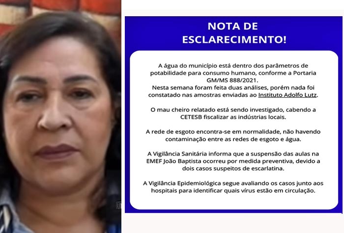 Por volta das 12h00, a prefeita Terezinha Viveiros também em nota disse que “A “a água do município está dentro dos parâmetros de potabilidade para consumo humano, conforme a Portaria GM/MS 888/2021. Nesta semana foram feita duas análises, porém nada foi constatado nas amostras enviadas ao Instituto Adolfo Lutz.”
