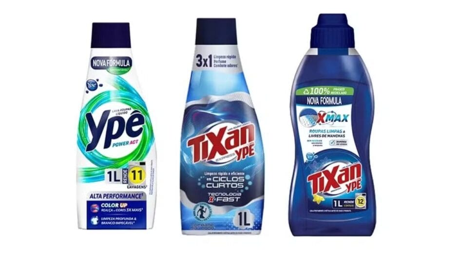 Lava Roupas Líquido Tixan Ypê – versão Primavera – Lote 254031, 193021; Lava Roupas Líquido Tixan Ypê – versão Maciez – Lote 97021; Lava Roupas Líquido Tixan Ypê Express” – versões – “Combate Mau Odor” (Azul) Lotes: 176011, 228011, 205011, 203011, 169011 e “Cuida das Roupas” (Rosa) – Lotes: 181011, 170011, 220011; e Lava Roupas Líquido Ypê Power Act” – Lotes: 228031, 190021, 223021
