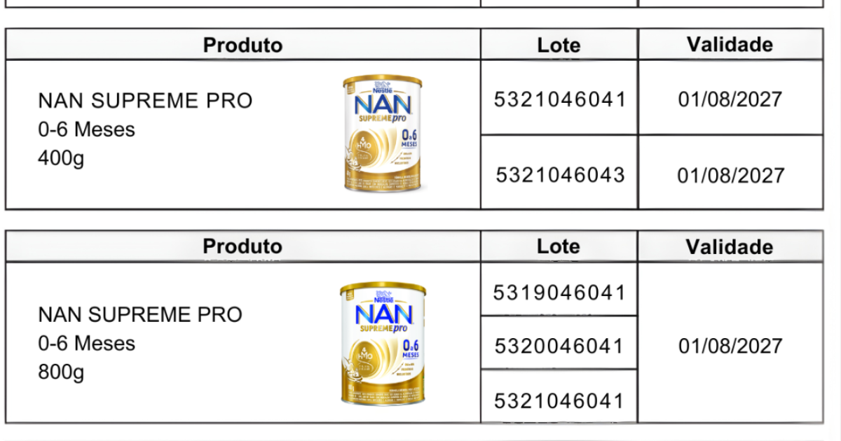 “Se os sintomas não aparecerem, não há motivo para inquietação quanto a qualquer impacto na saúde. Se tiver alguma preocupação com a saúde ou nutrição da criança, recomendamos que o consumidor fale com o seu pediatra ou profissional de saúde. Independentemente da presença dos sinais, os pais e cuidadores devem interromper o uso do produto”, recomenda a Nestlé.