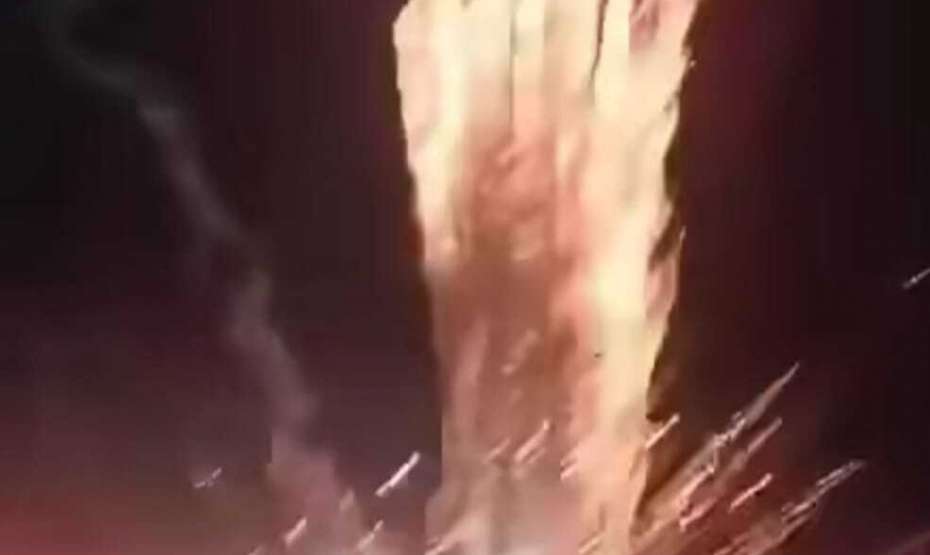 Imagens que circulam nas redes sociais mostram fogos explodindo lateralmente sobre o telhado de um prédio de um pavimento em frente à praça, projetando faíscas e fragmentos na direção do público. Veículos estacionados também foram atingidos.