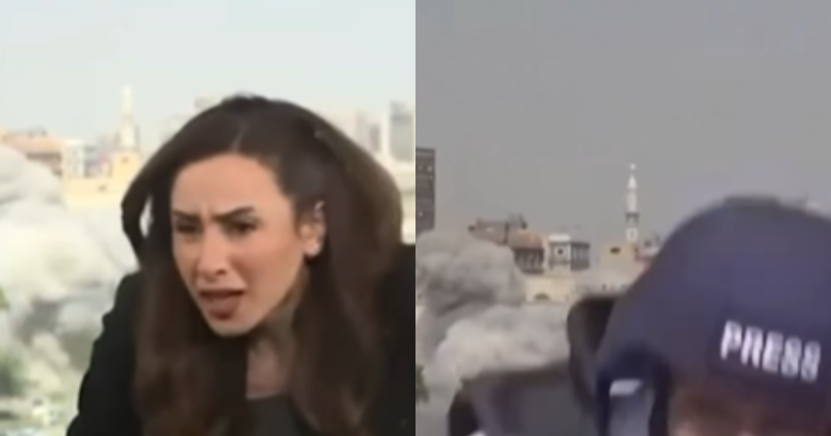Enquanto fazia uma transmissão ao vivo sobre o conflito com Israel, uma jornalista foi surpreendida por um bombardeio que atingiu a sede da emissora. O estúdio ficou cheio de fumaça e poeira, e a repórter precisou sair às pressas. A programação foi interrompida imediatamente.