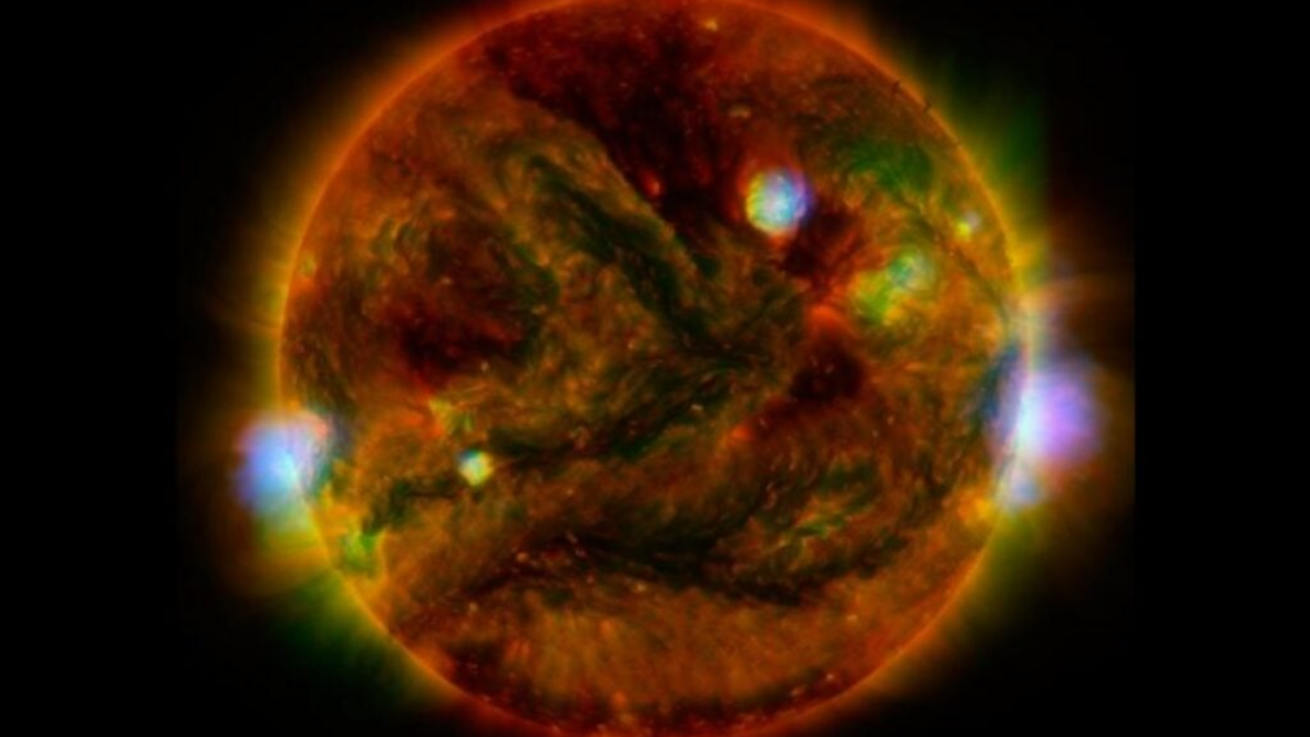 O telescópio espacial NuSTAR, criado para estudar explosões estelares e buracos negros, voltou suas lentes para o Sol. Em conjunto com o Hinode e o Solar Dynamics Observatory (SDO), captou imagens que mostram pontos azuis indicando regiões altamente ativas.