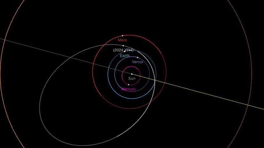 Diagrama da órbita do asteróide 2024 YR4