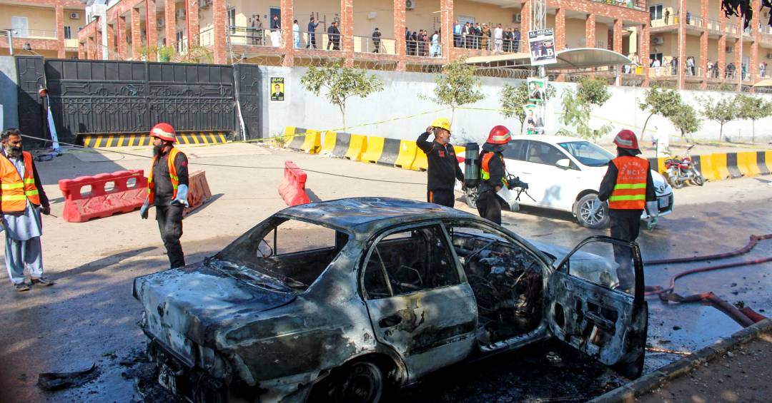Falando a repórteres no local, Naqvi relatou que o terrorista tentou entrar no prédio do tribunal a pé, mas foi impedido. Em seguida, esperou entre 10 e 15 minutos e detonou o dispositivo do lado de fora, perto de uma viatura.