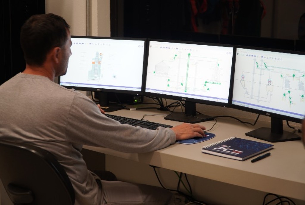 A automação também elevou os padrões de segurança. Alarmes sonoros alertam sobre o acionamento de motores, minimizando riscos de acidentes. À noite, operadores acompanham toda a unidade a partir da sala de controle, enquanto o escritório monitora o processo remotamente.