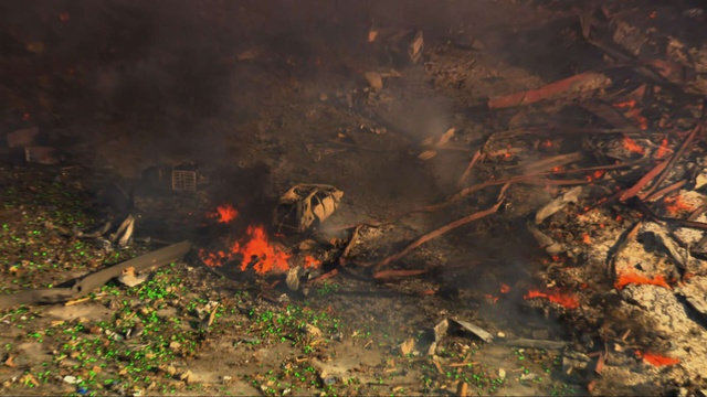 Imagens televisivas mostraram um edifício completamente destruído, em chamas, e veículos destruídos pela explosão.