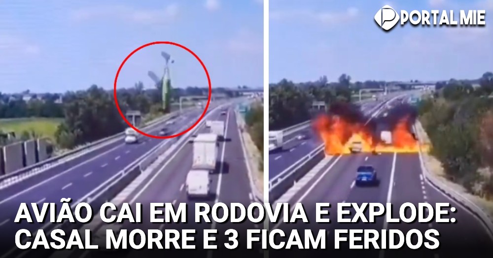 As câmeras de monitoramento gravaram as imagens do acidente seguido de explosão, ocorrido na terça-feira (22). Após a queda, o avião explodiu e pegou fogo no meio da rodovia.