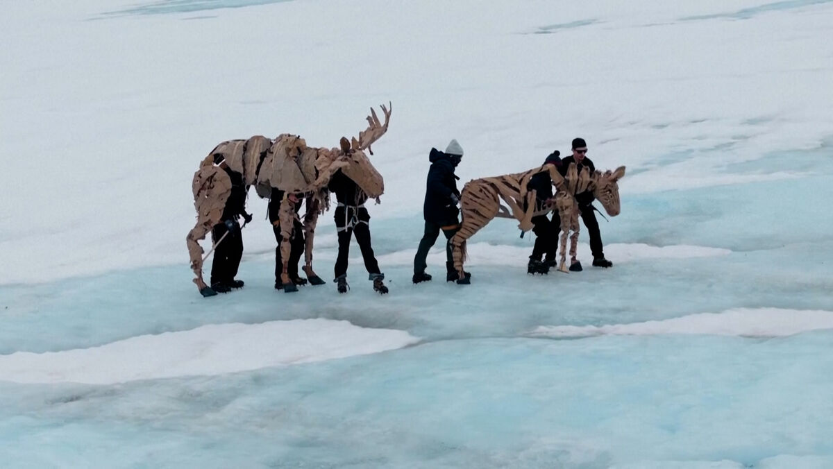 Partiram do Congo, em abril, e seguiram para norte, reproduzindo uma fuga do desastre climático e recolhendo novos animais dos países por onde passavam. Chegaram esta quinta-feira ao Ártico, marcando a conclusão de uma obra de arte que durou meses e que foi criada para chamar a atenção para as mudanças climáticas.