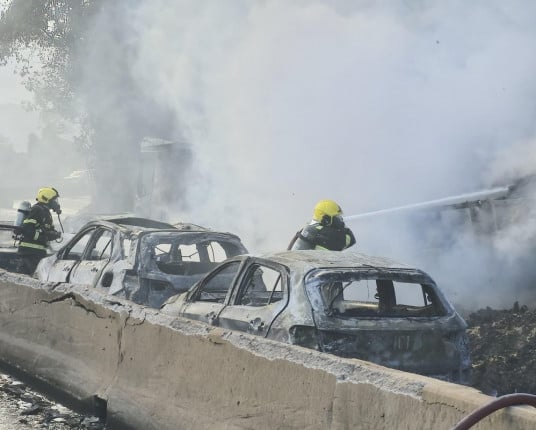 Outras duas carretas e 22 carros foram atingidos. O fogo se espalhou rapidamente após o tombamento do caminhão, e veículos que estavam próximos entraram em combustão.
