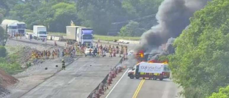 Equipes do Corpo de Bombeiros, Samu, PRF e CCR ViaSul foram acionadas e permanecem no local, isolando a área e atuando no controle das chamas. A rodovia foi totalmente bloqueada para garantir a segurança dos condutores enquanto os trabalhos de emergência continuam.