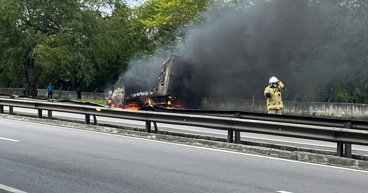 De acordo com o Corpo de Bombeiros, as causas do incêndio ainda serão investigadas. Até o momento, não há registro de feridos. O fogo foi controlado e o local segue em monitoramento até a completa liberação do tráfego.