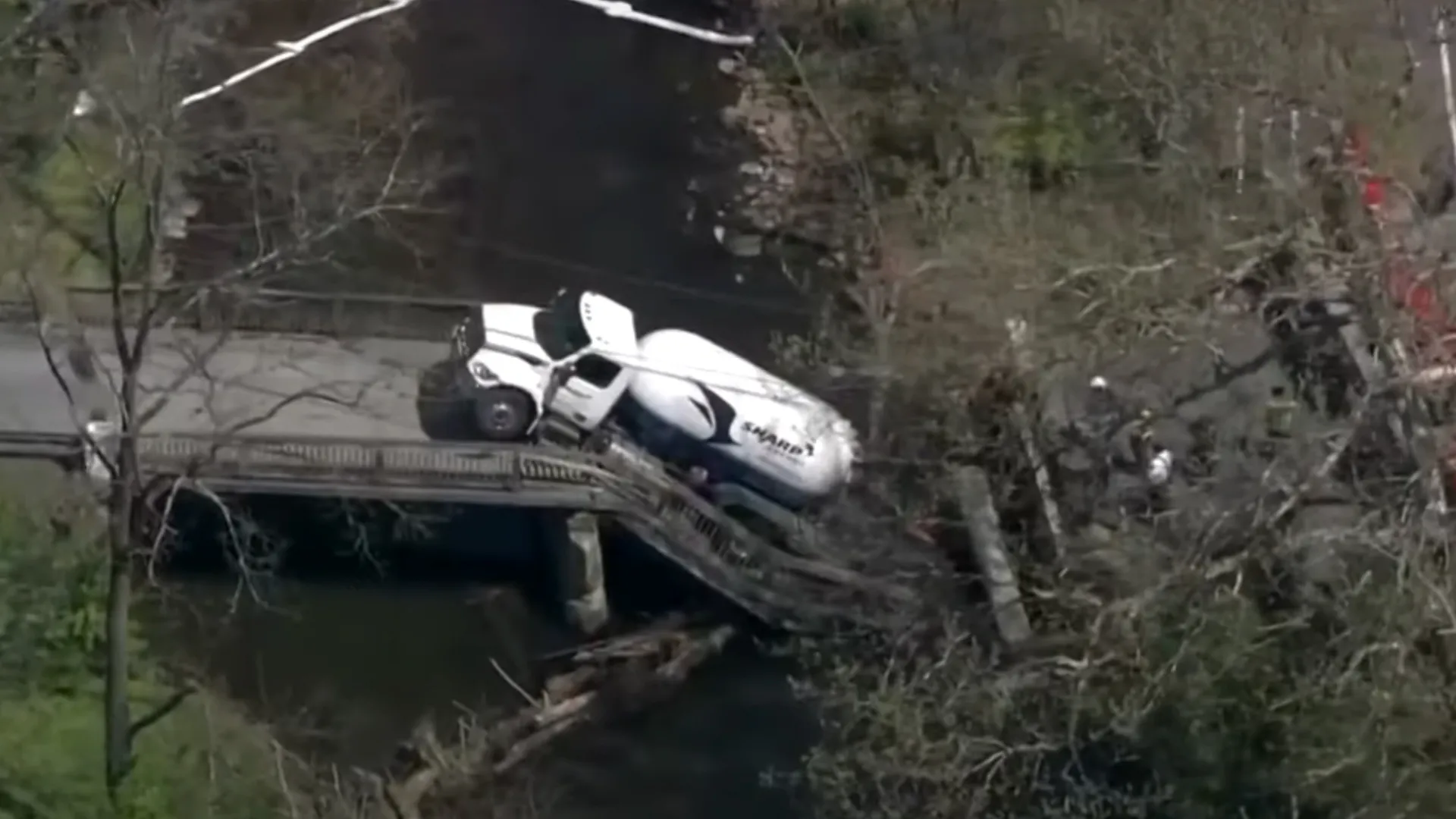 A estrutura não resistiu ao peso e cedeu antes mesmo que o veículo completasse a travessia. O caminhão caiu diretamente no Little Lehigh Creek.