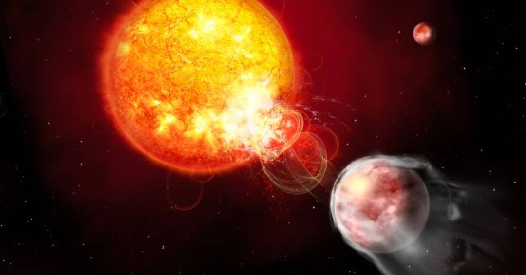 Um exoplaneta — ou seja, que orbita uma estrela fora do nosso sistema solar — recém-observado está destruindo a si mesmo ao provocar violentas explosões na estrela que gira ao seu redor. O planeta HIP 67522b, localizado a 408 anos-luz da Terra, está tão incrivelmente próximo de seu sol que sua presença perturba o campo magnético estelar — e isso tem consequências devastadoras. As perturbações desencadeiam erupções de radiação que atingem o próprio planeta em cheio, corroendo sua atmosfera em ritmo acelerado..