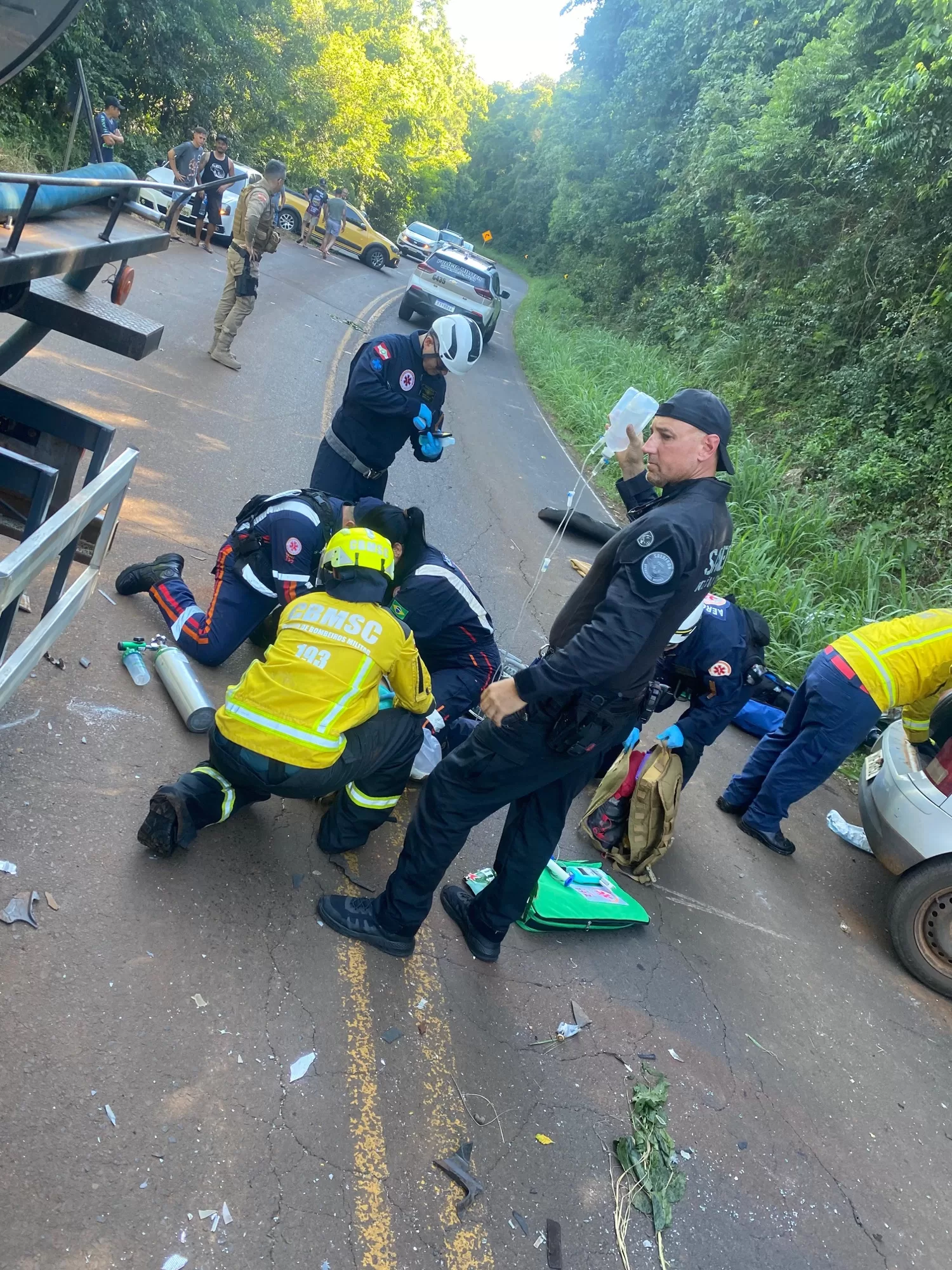O Corpo de Bombeiros trabalhou intensamente no desencarceramento do motorista do Gol, que apresentava um quadro clínico crítico. Paralelamente, a equipe do Samu Aeromédico iniciou os protocolos de reanimação e estabilização ainda no local da via.