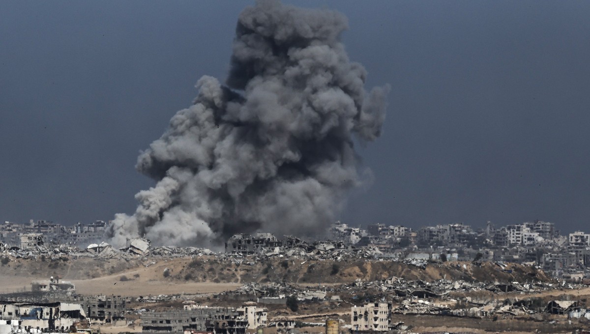 Guerra: explosões em Gaza, sob ataque de Israel. Tsafrir Abayov/Anadolu via Getty Images