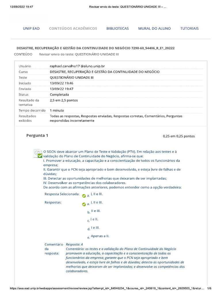 Desastre, Recuperação e Gestão Da Continuidade Do Negócio – Questionario Unidade III