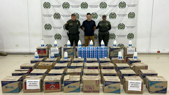 Durante el allanamiento, realizado en una vivienda del barrio Edmundo López, las autoridades hallaron 312 botellas de hipoclorito de sodio listas para ser distribuidas en el comercio informal, junto con etiquetas adhesivas sin registro sanitario, cajas, envases y demás implementos de procesamiento. Los elementos incautados fueron avaluados en aproximadamente 6 millones de pesos.
