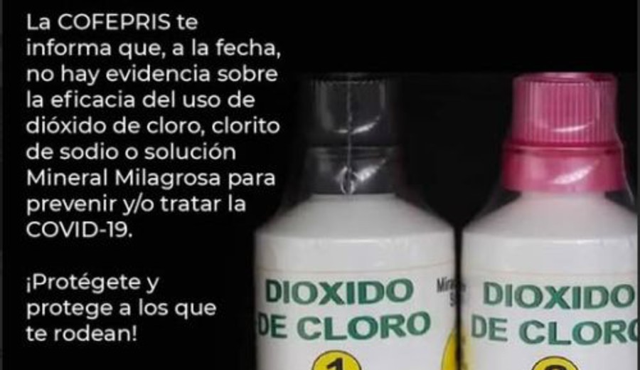 Provoca efectos adversos a la salud el consumo de dióxido de cloro. No existe evidencia científica sobre su eficacia contra la COVID-19