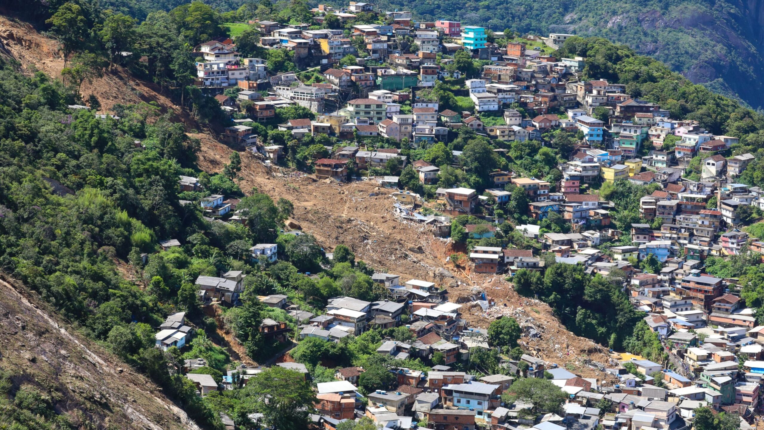 Desastre em Petrópolis no ano de 2022 visto em sobrevoo de helicóptero