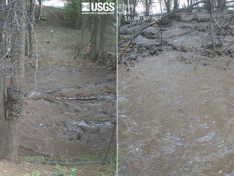 No Novo México, as autoridades pediram que os moradores procurassem terrenos mais altos na tarde de terça-feira, quando o nível do rio Rio Ruidoso subiu cerca de 5,8 metros em questão de minutos devido à forte chuva.