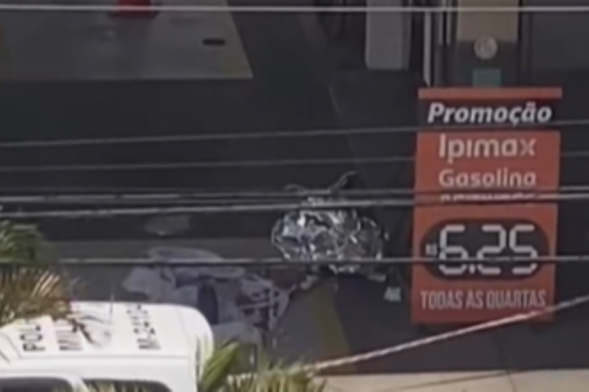 Um vídeo mostra o veículo da vítima com a porta do motorista aberta, enquanto um corpo está coberto por um alumínio a metros dali.