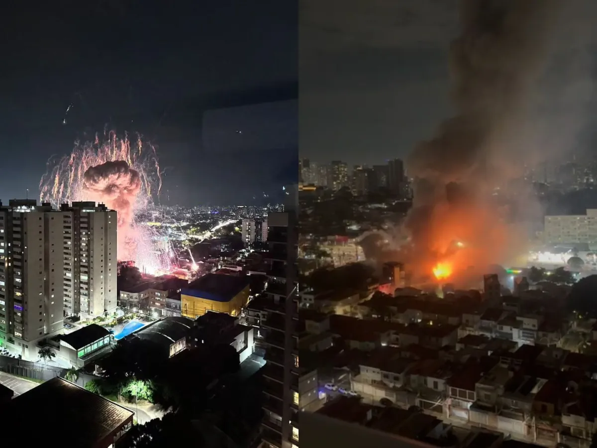 Imagens registradas do momento das explosões dos fogos de Artifícios armazenados em residência no bairro do Tatuapé, zona leste de SP. Imagem registrada por morador. Tatuapé SP. pic.twitter.com/zbaqrvJnHE
