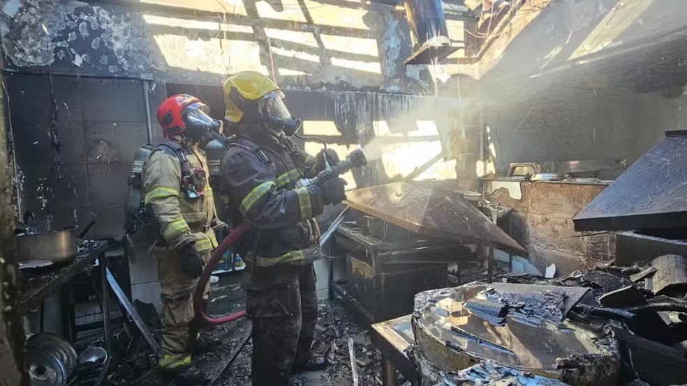 Com o incêndio controlado, os bombeiros realizaram o trabalho de rescaldo e aplicaram água nas estruturas de madeira do teto, que ainda apresentavam focos de calor. Durante a inspeção técnica, foram identificados danos severos nos botijões de gás — como válvulas derretidas e componentes travados —, o que pode ter contribuído significativamente para a explosão.