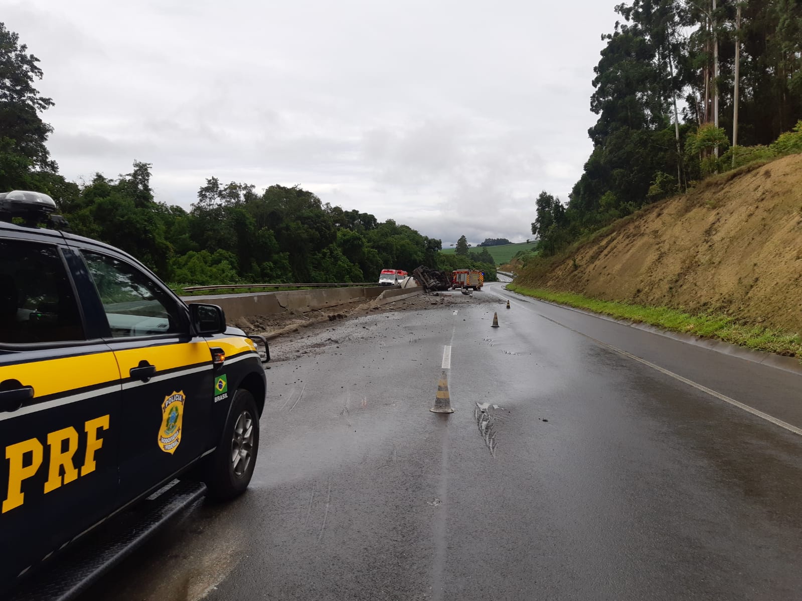 As equipes da Polícia Rodoviária Federal, Corpo de Bombeiros e a concessionária responsável pela rodovia foram acionadas para atender à ocorrência. Além disso, o Instituto Água e Terra também foi chamado para avaliar o risco de vazamento do produto químico e possíveis contaminações ao meio ambiente.