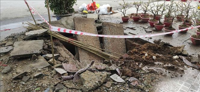 Segundo a Hai Phong Drainage Company Limited, às 9h30 do dia 13 de fevereiro, a Unidade de Drenagem nº 6, subordinada à Hai Phong Drainage Company Limited, descobriu cinco bueiros na rua Ton Duc Thang que haviam estourado, expondo a calçada. Imediatamente após a descoberta, a empresa comunicou o incidente à sua direção. A empresa instruiu sua equipe de inspeção e a Unidade de Drenagem nº 6 a coordenarem com o Departamento de Infraestrutura do distrito de An Hai para documentar o incidente e instalar barreiras temporárias para garantir a segurança do trânsito.