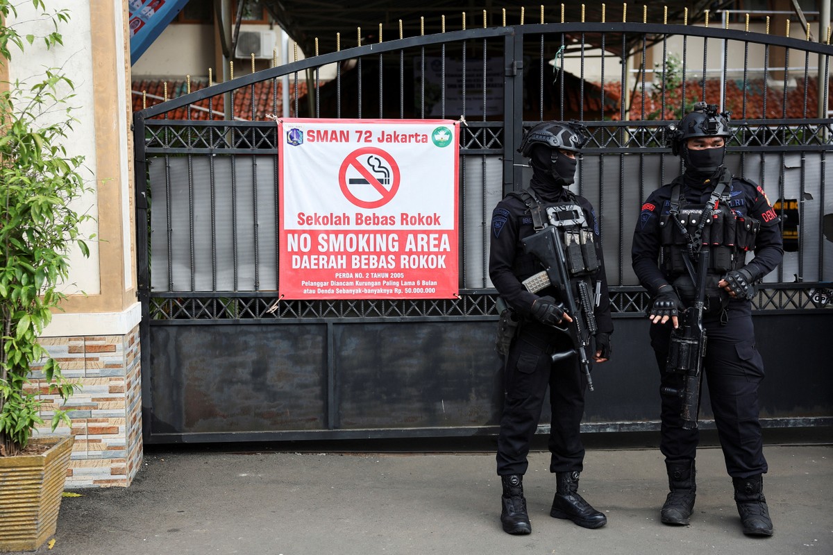 A agência estatal Antara citou o vice-ministro de Segurança, Lodewijk Freidrich, destacando duas explosões. Policiais vestidos de preto e armados com fuzis guardavam os portões de ferro do complexo, enquanto veículos de emergência e blindados da polícia estavam estacionados na rua.