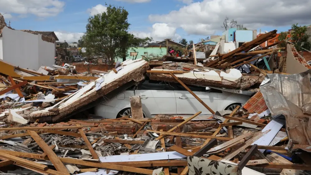 A passagem de um tornado na sexta-feira (7), com ventos que chegaram a 250 km/h, destruiu grande parte da cidade de Rio Bonito do Iguaçu, no interior do Paraná.