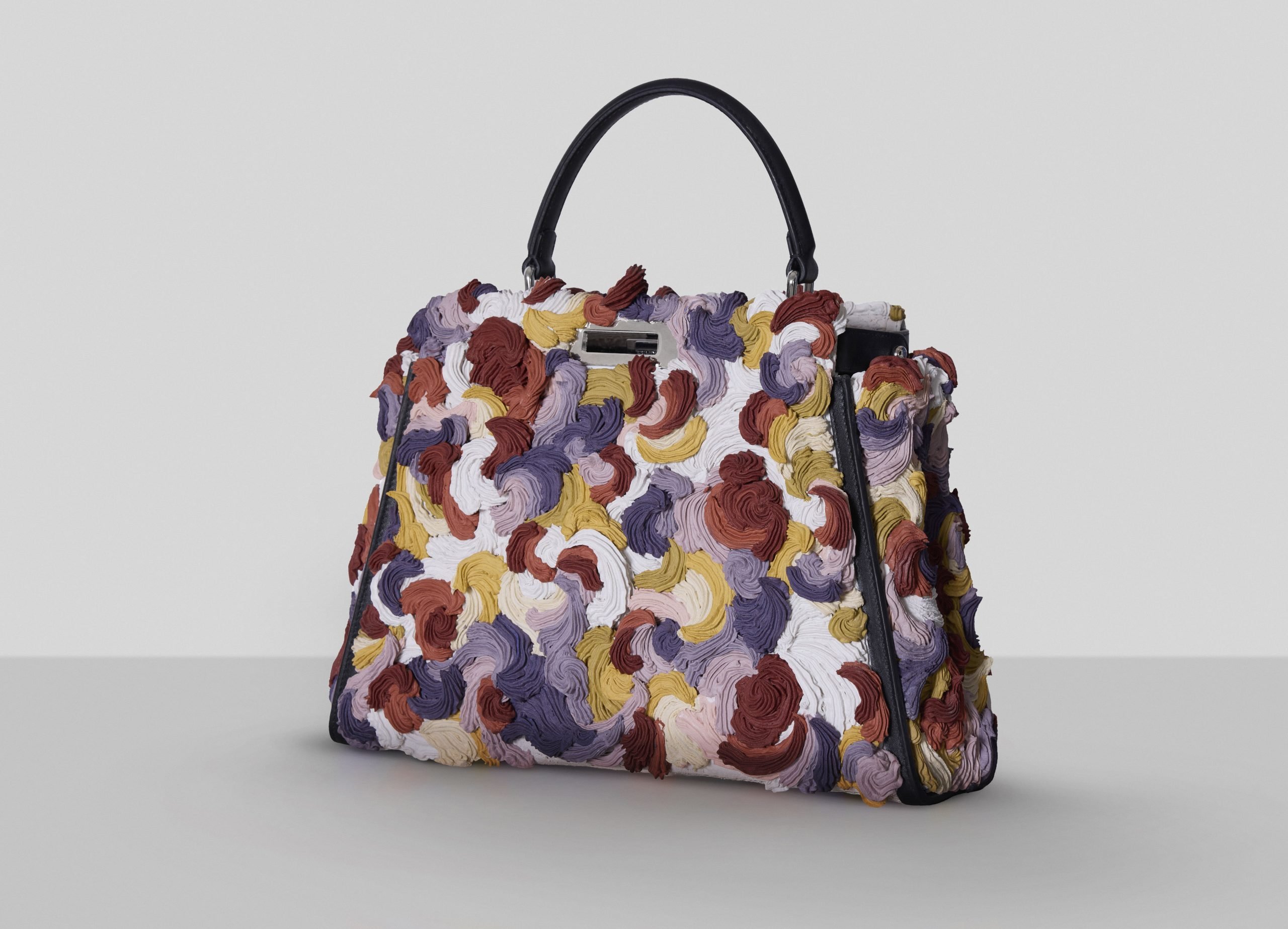 A mesma suavidade da obra inspira uma Peekaboo personalizada em lona branca, que será exibida na loja como a mais recente adição à série Peekaboo Artists. Demonstrando a maestria artesanal da FENDI e sua atenção à circularidade, materiais excedentes de coleções anteriores serão usados para criar um número limitado de bolsas Made-To-Order Peekaboo, inspiradas na obra exclusiva de Piermattei, disponíveis para venda.