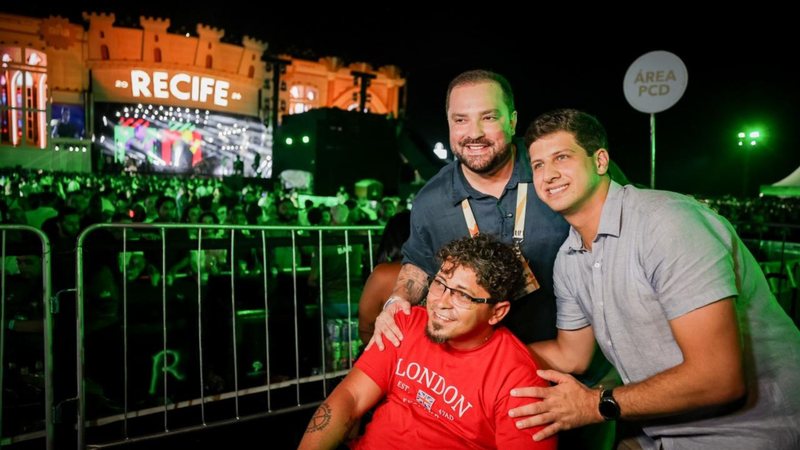 O prefeito João Campos (PSB) acompanhou a festa e citou a estrutura de acessibilidade, que incluiu um camarote para Pessoas com Deficiência (PCD).