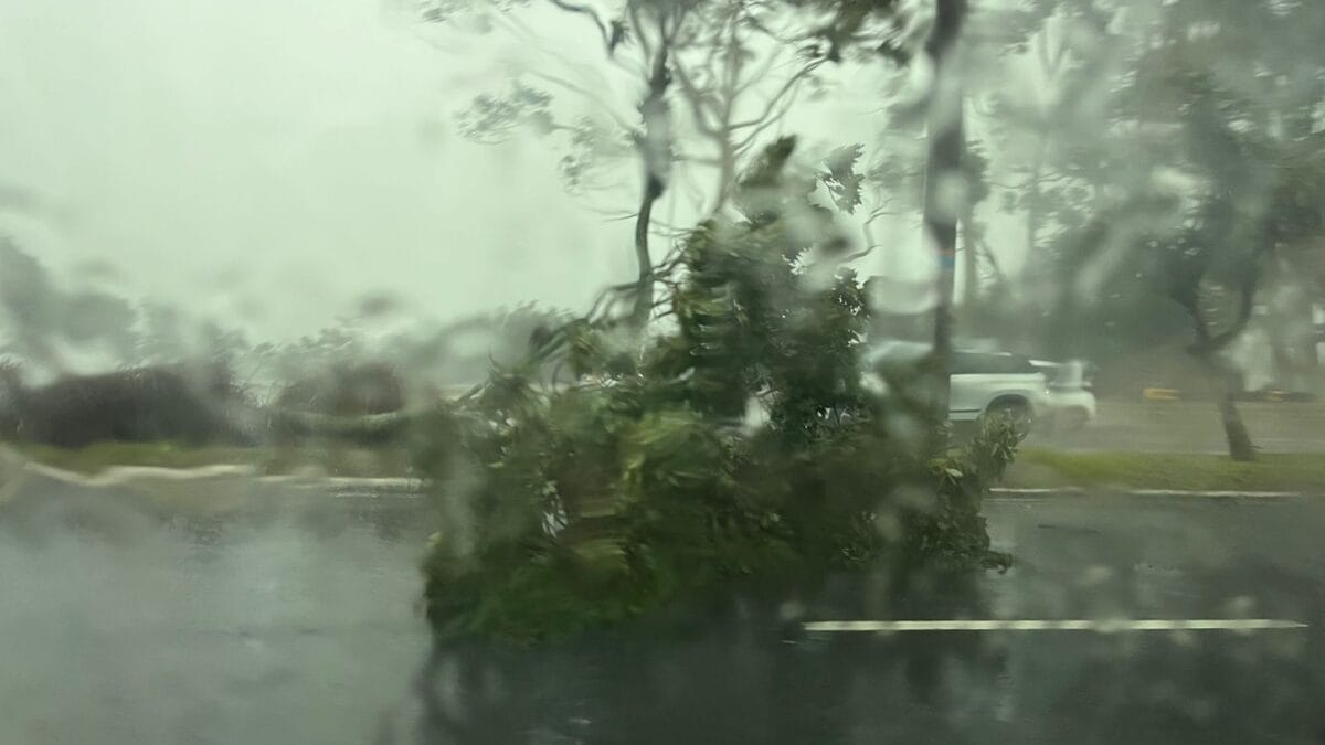 Na Beira-Mar Norte, uma árvore caiu sobre um táxi e bloqueou a faixa da esquerda, deixando o semáforo inoperante nos dois sentidos. Inicialmente, o Corpo de Bombeiros havia recebido a informação de que havia uma vítima dentro do táxi, mas a ocorrência não se confirmou.