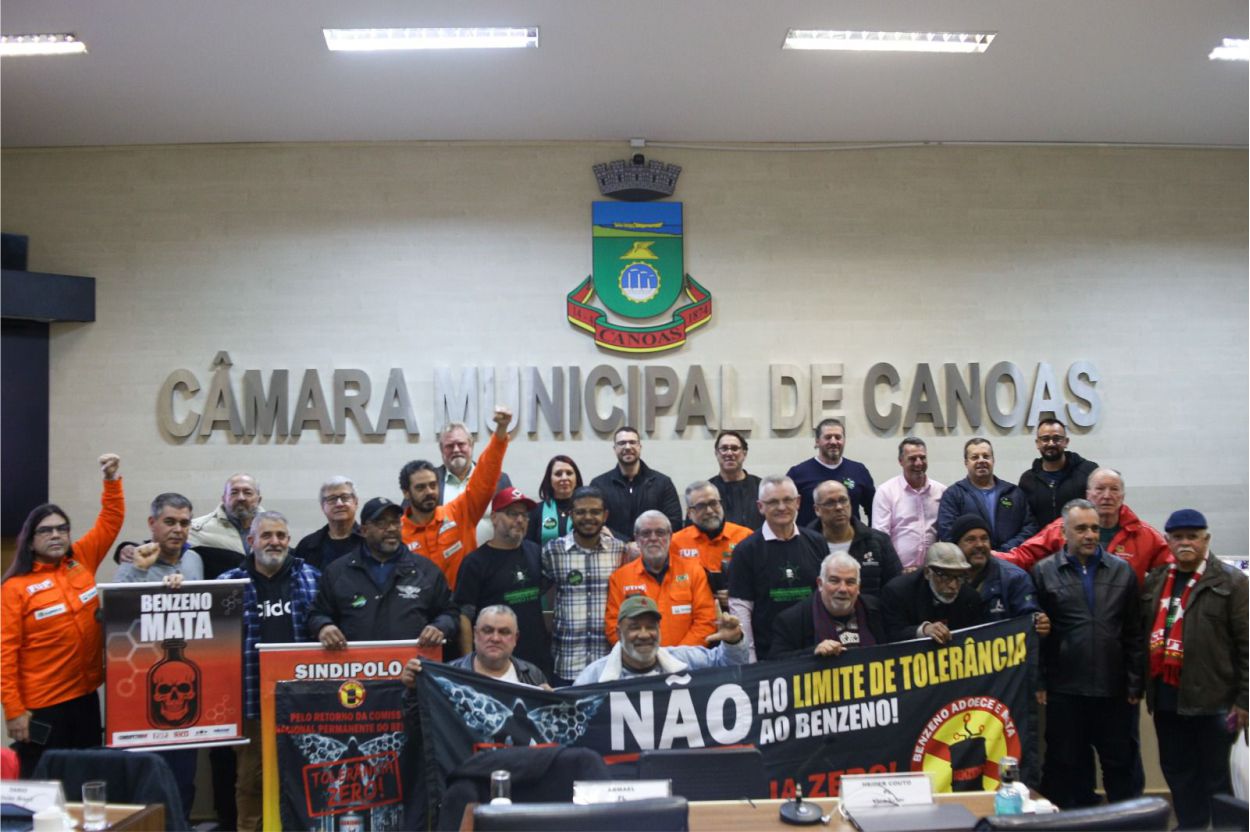 Com o plenário lotado, a fala inicial de Constantino destacou a gravidade do tema e a urgência de políticas públicas que enfrentem o problema de frente. “Canoas é uma cidade altamente industrializada, com uma das maiores concentrações petroquímicas do estado. E isso significa que vivemos cercados por uma substância que mata em silêncio”, alertou. Ao longo do Grande Expediente, os dirigentes sindicais fizeram apresentações técnicas e relatos sobre o impacto do benzeno na vida de trabalhadores. Segundo os especialistas convidados, não existe limite seguro para exposição ao benzeno. Mesmo em baixíssimas concentrações, a partir de 1 parte por milhão (ppm), a substância já é capaz de causar leucemia, linfomas, alterações no DNA e diversas outras doenças graves.
