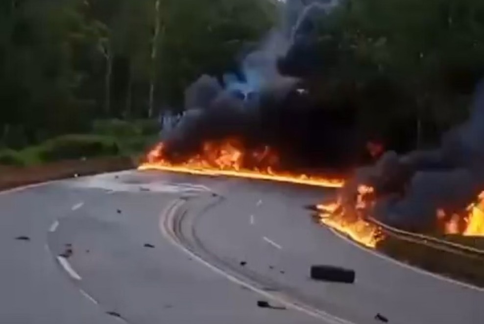 Equipes da Polícia Rodoviária Federal (PRF) e do Corpo de Bombeiros também foram acionadas. Segundo os bombeiros, as chamas se alastraram para uma vegetação próxima, agravando o cenário.