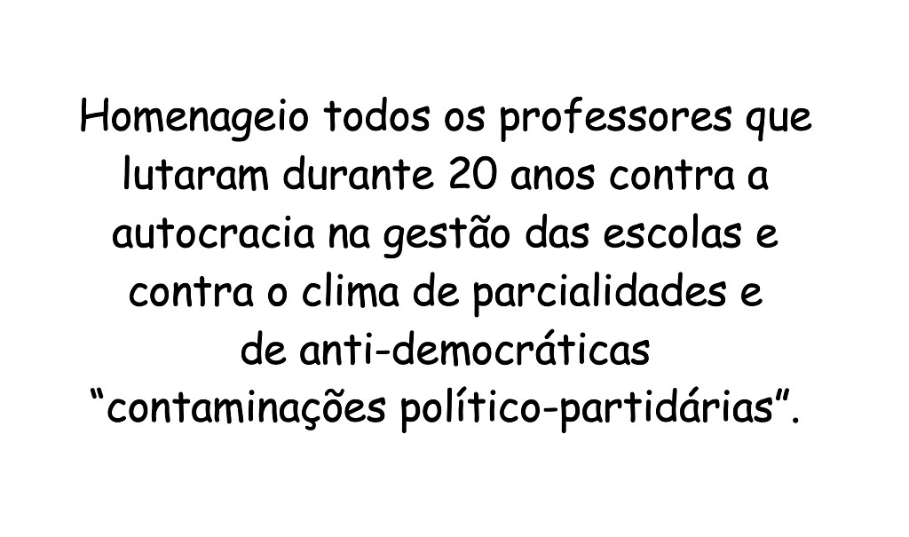 E pesando bem as palavras, 20 anos após o início de tanta destruição na organização da escola pública e na vida pessoal e profissional de milhares de professores e de outros profissionais da educação, o PS, diz o Público, quer que “as direcções escolares deixem de ser eleitas pelo conselho geral e passem a ser um órgão colegial eleito em lista por uma assembleia eleitoral composta por todos os docentes e não docentes em serviço na escola ou agrupamento, por representantes dos encarregados de educação de cada uma das turmas e, ainda, se for no ensino secundário, pelos delegados de cada turma.” Leio por aí que isto pretende ser uma antecipação ao actual Governo. Diz-se que a AD quer legislar o mesmo. Nesse caso, seria um duplo salto mortal à retaguarda, já que a AD apoiou estas políticas do PS dede 2005 (o modelo vigente entrou em vigor em 2008 e foi agravado em 2013) e agravou-as sempre que governou (e o actual Governo tem feito referência a um estatuto do director). Mais vale tarde, sei disso. Mas num caso que nunca devia ter existido, é muito tarde e com resultados irreparáveis na queda das aprendizagens e na falta estrutural de professores. Neste momento, homenageio todos os professores que lutaram durante 20 anos contra a autocracia na gestão das escolas e contra o clima de parcialidades e de anti-democráticas “contaminações político-partidárias”.