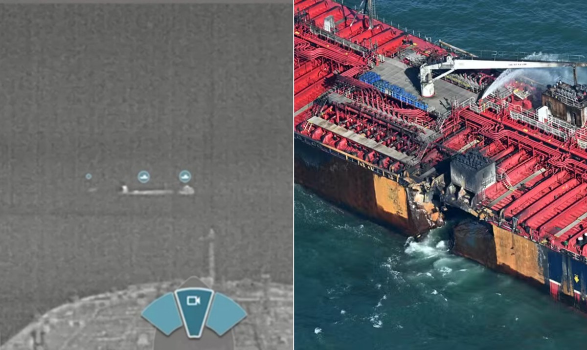 Kane acrescentou que “nenhum sinal de poluição foi observado neste momento”, mas ponderou que “o alerta permanece em vigor” após a colisão, já que um tanque de querosene se rompeu no petroleiro.