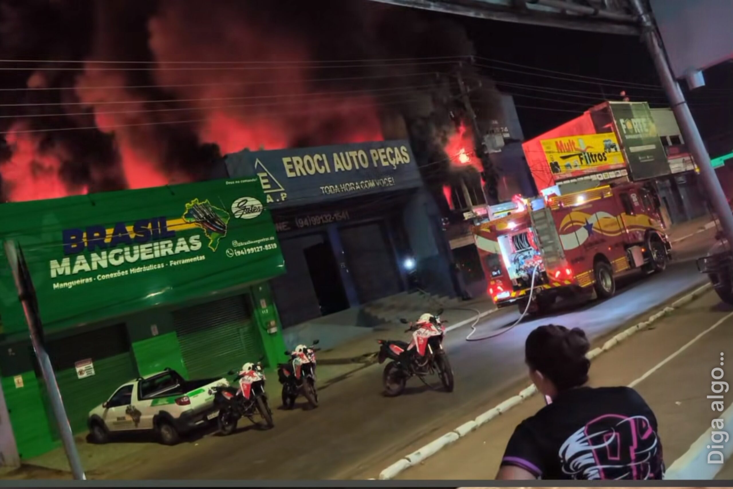 Na noite desta quinta-feira (8), um incêndio de grandes proporções atingiu em cheio a empresa Fermac, especializada em assistência técnica, ferramentas, parafusos, equipamentos de EPI, motores e compressores, localizada na Avenida Liberdade, no bairro Rio Verde, em Parauapebas.