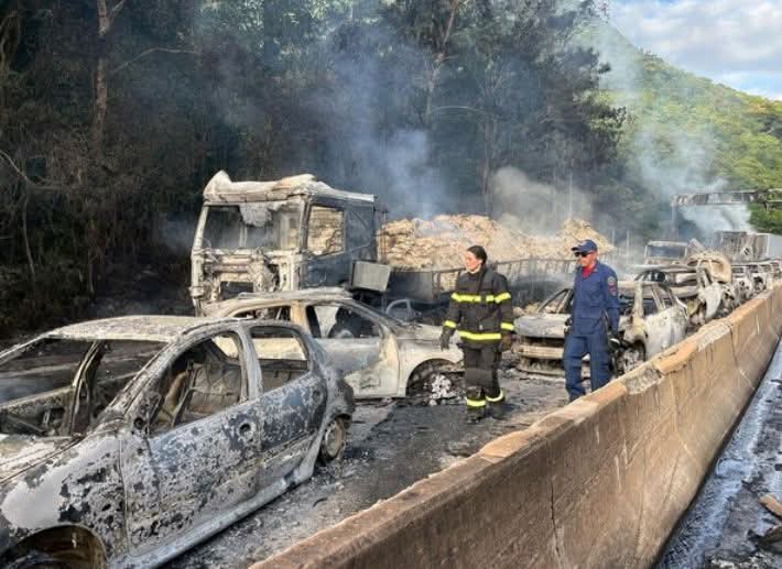 O Corpo de Bombeiros Militar confirmou que cinco pessoas ficaram feridas e precisaram ser socorridas. A força da explosão e a propagação rápida do fogo deixaram um cenário de destruição ao longo da pista. Imagens aéreas revelaram o rastro deixado pelo incêndio, com veículos completamente carbonizados.