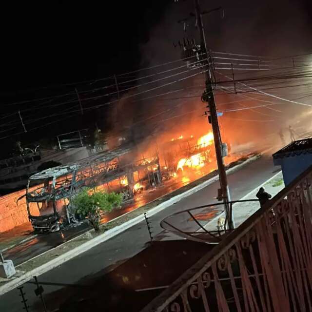 Em vídeo divulgado em redes sociais, é possível ver o momento da explosão em um dos ônibus e as chamas consumindo rapidamente a lataria dos veículos.