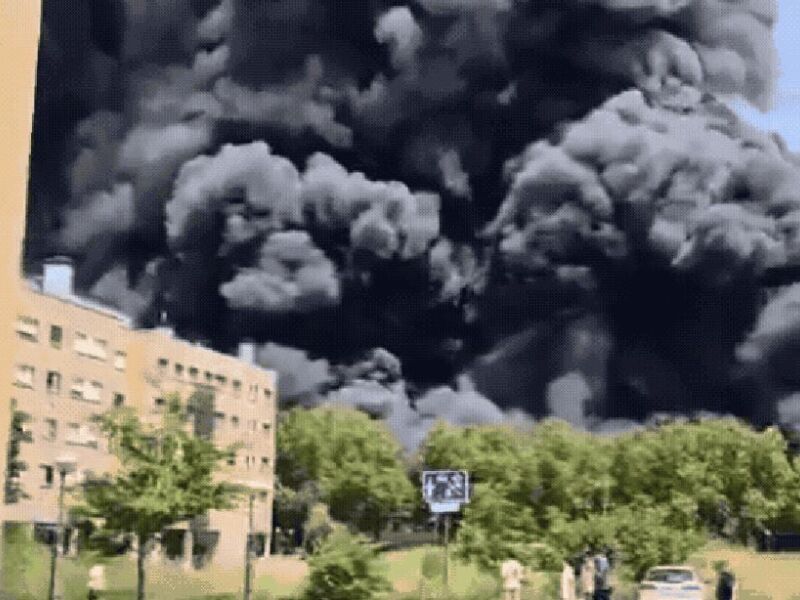 #España | Se registra un incendio en la fábrica de productos de higiene LEA, ubicada en el polígono industrial de Gamarra. El fuego, ha generado una gran columna de humo visible desde varios puntos de la ciudad, y ha obligado a activar un protocolo de evacuación en la zona. pic.twitter.com/xAHpGXGLkB