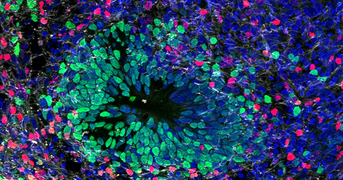 Com o apelido popular de minicérebros, esses tecidos tridimensionais são cultivados em suspensão em um líquido avermelhado com vitaminas, aminoácidos, sais minerais, lipídios e tudo de que precisam para funcionar adequadamente.